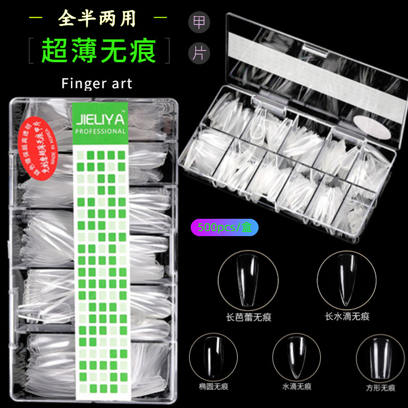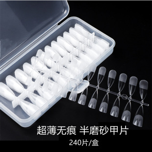 ネイルアートの超薄無痕延長甲片半貼り全貼りフロスト無研磨アーモンドバレエ両用偽シール