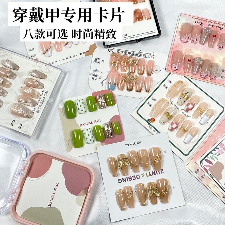 甲の小さい紙のネイルの完成品の爪の切れのネイルカードの作品を身につけて硬いカードの偽の爪の切れを展示して専用を撮影します。