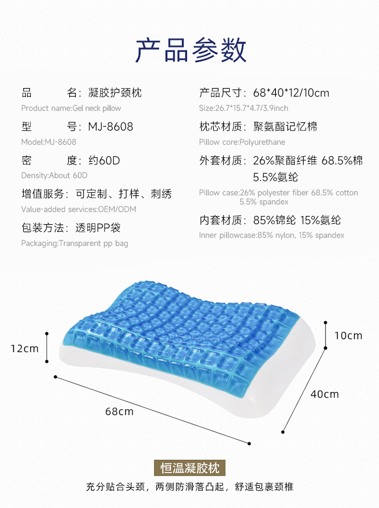 ゲル枕、低反発枕、純綿枕カバー、冷却記憶枕、卸売カスタム夏用ゲル枕