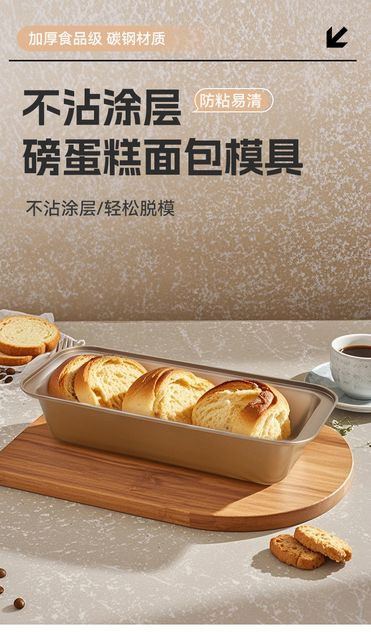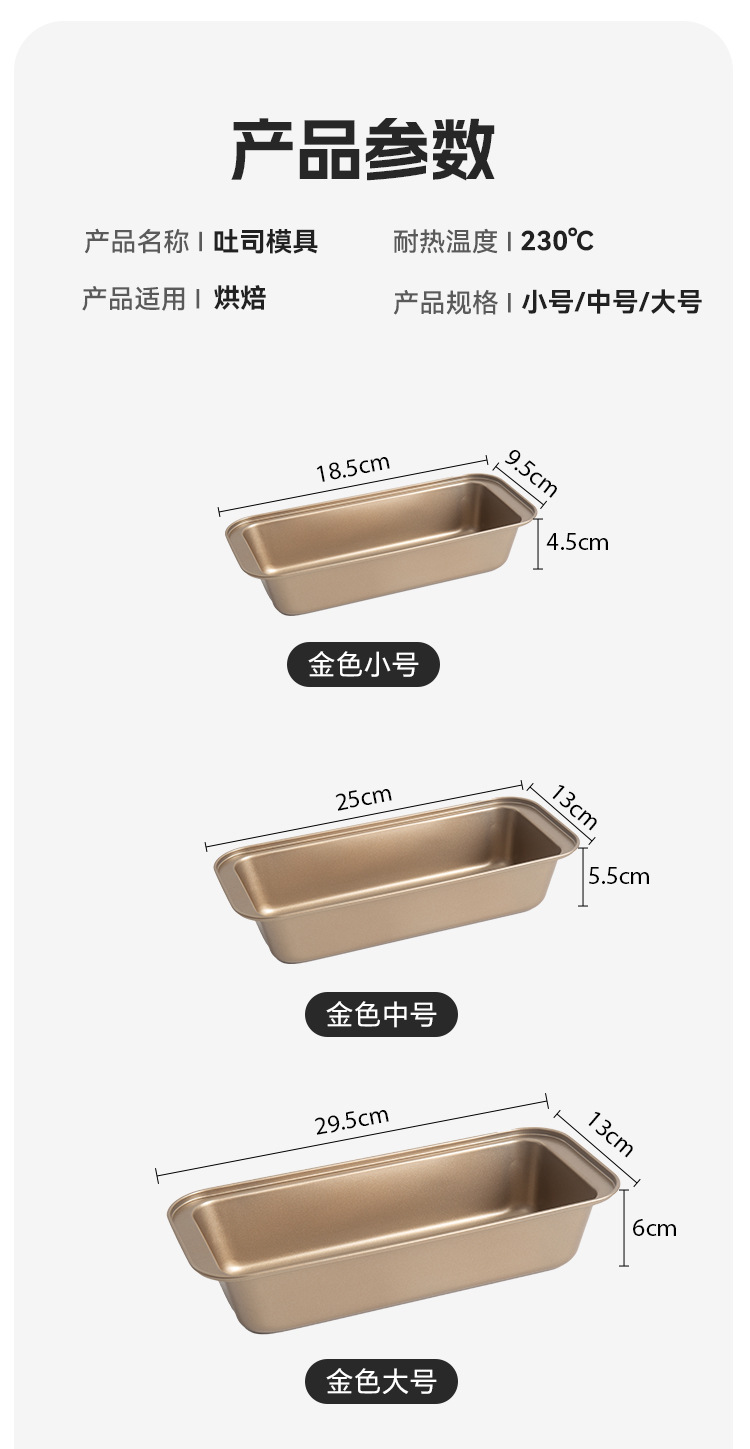 メーカー直供無粘炭素鋼芝土パン焼き皿トーストボックス長方形ケーキ金型家庭用キッチンツール