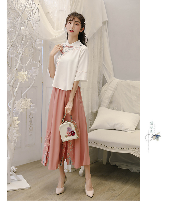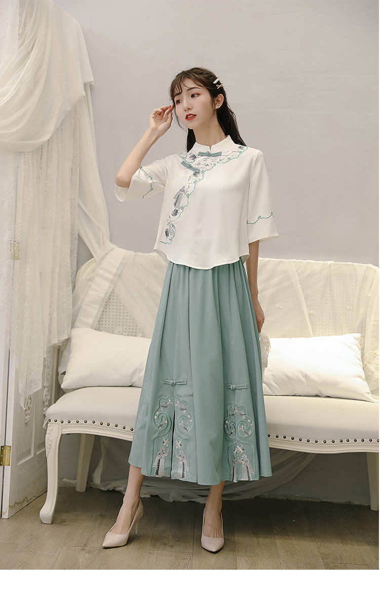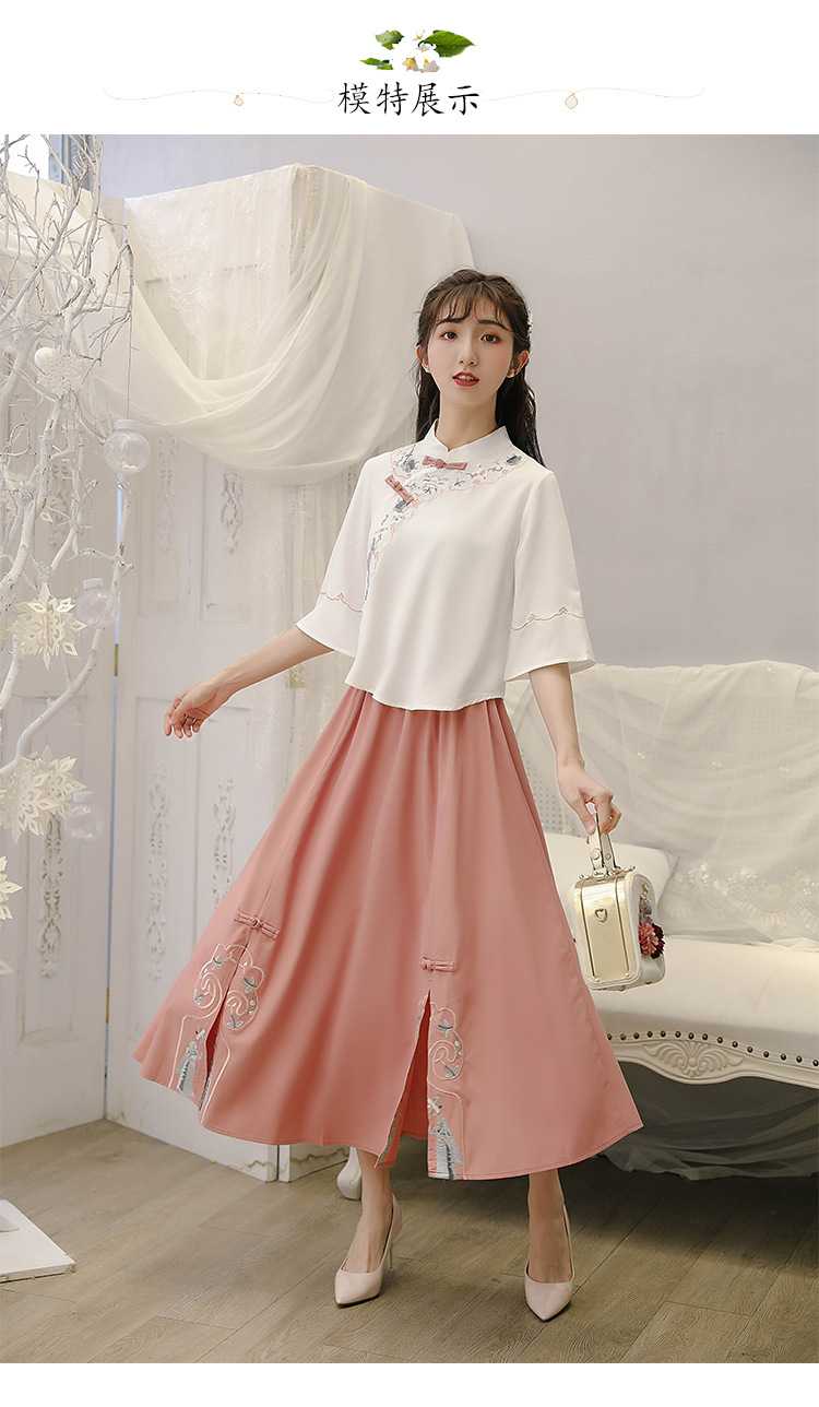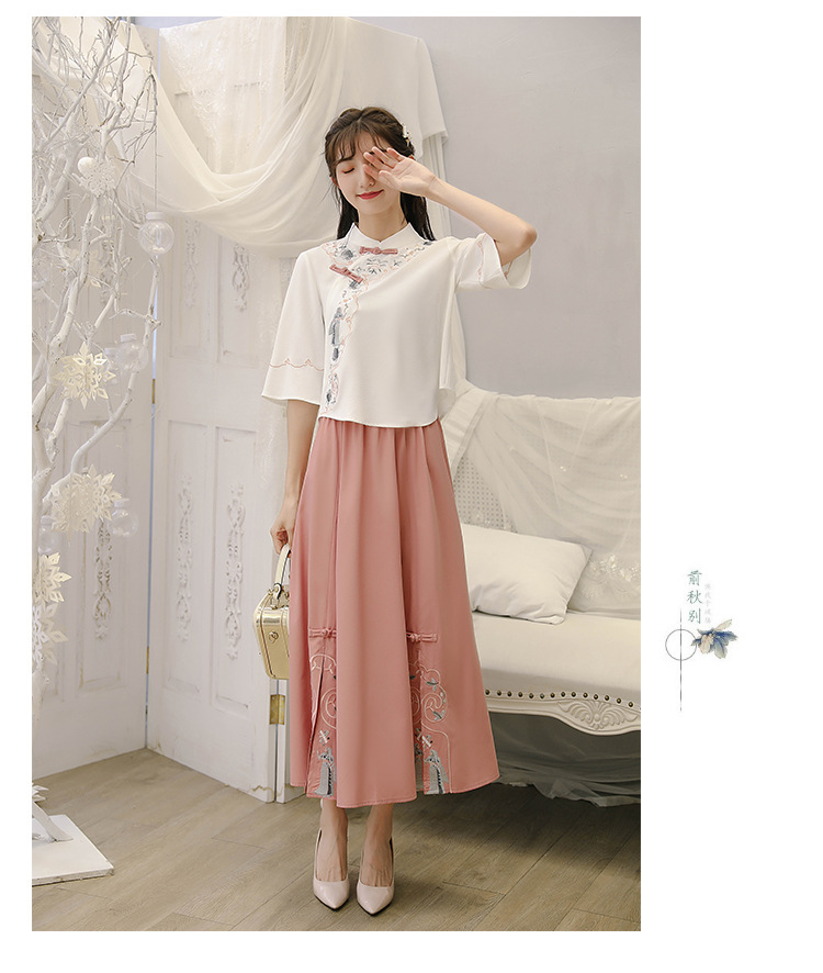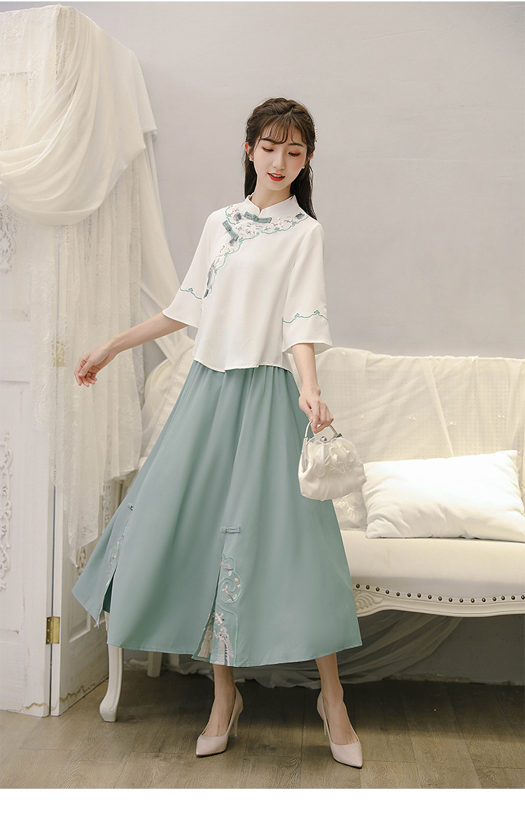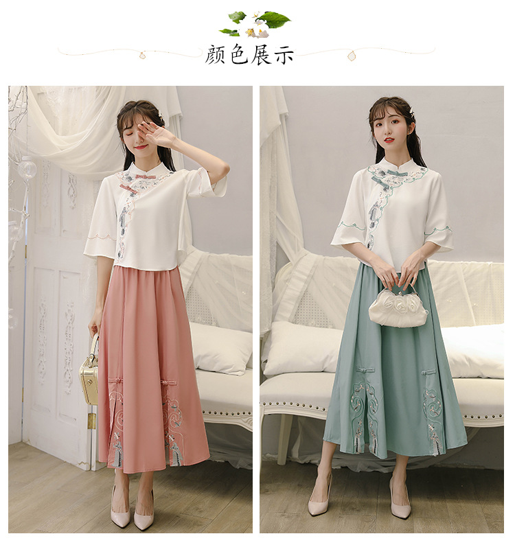 8985 中国風ドレスチャイナドレス漢服スーツ中華民国スタイルの女性の漢要素ツーピースセットファッションとレジャー