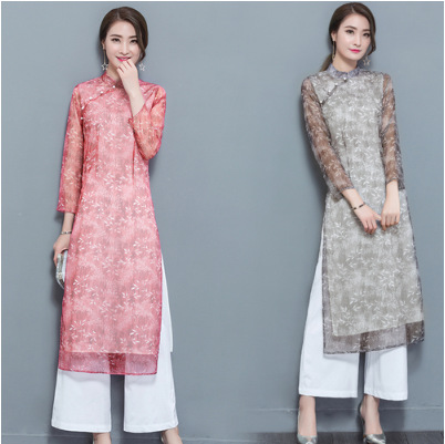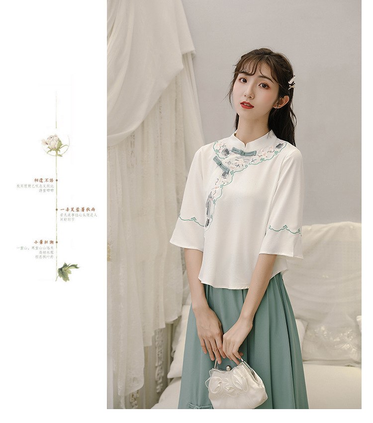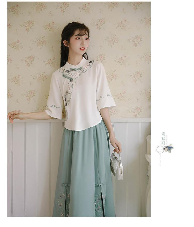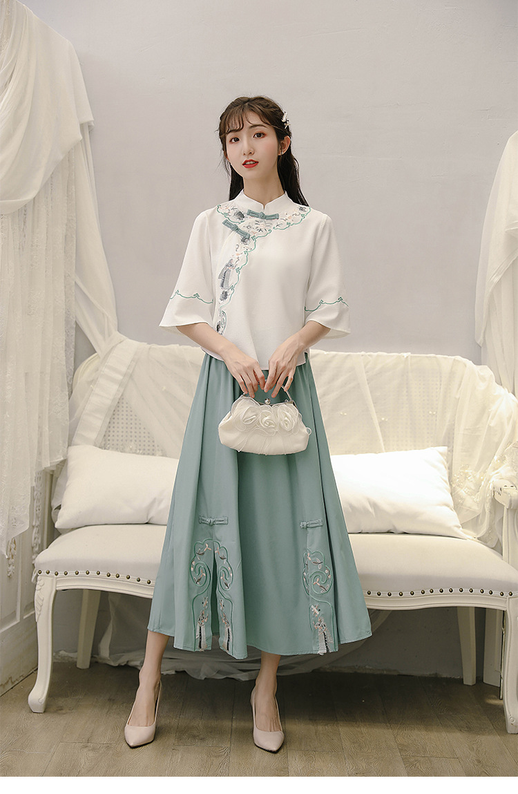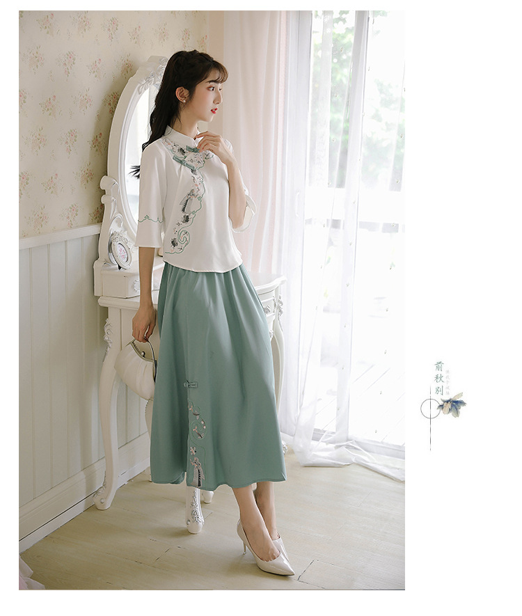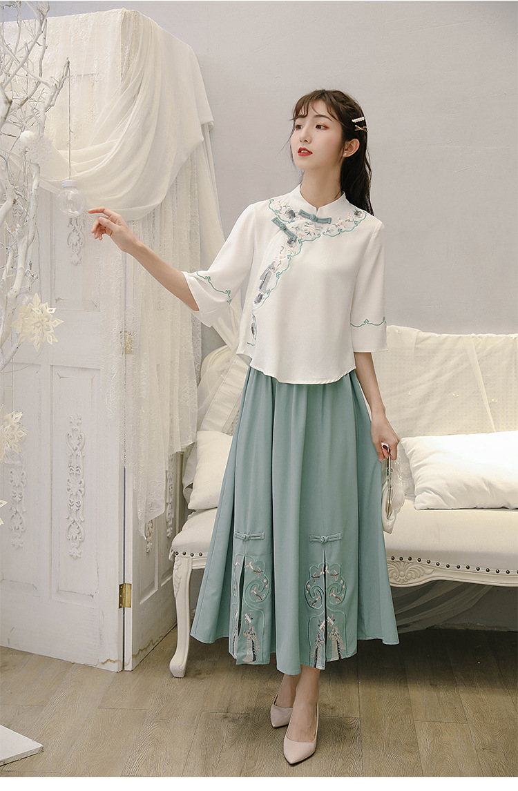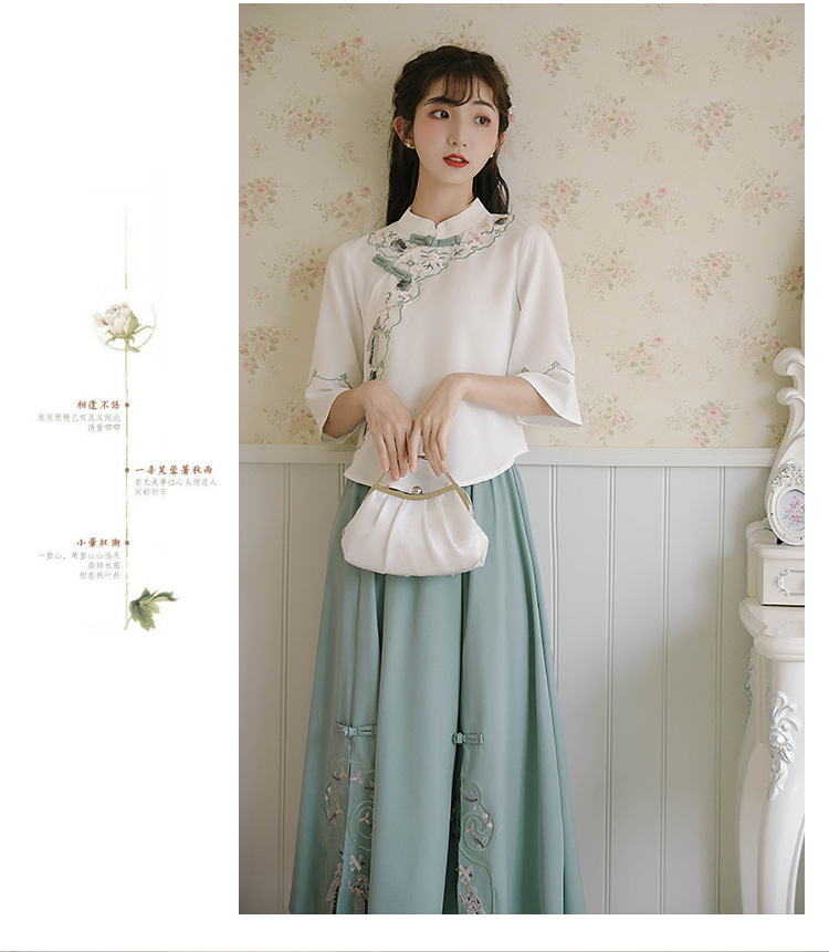 8985 中国風ドレスチャイナドレス漢服スーツ中華民国スタイルの女性の漢要素ツーピースセットファッションとレジャー
