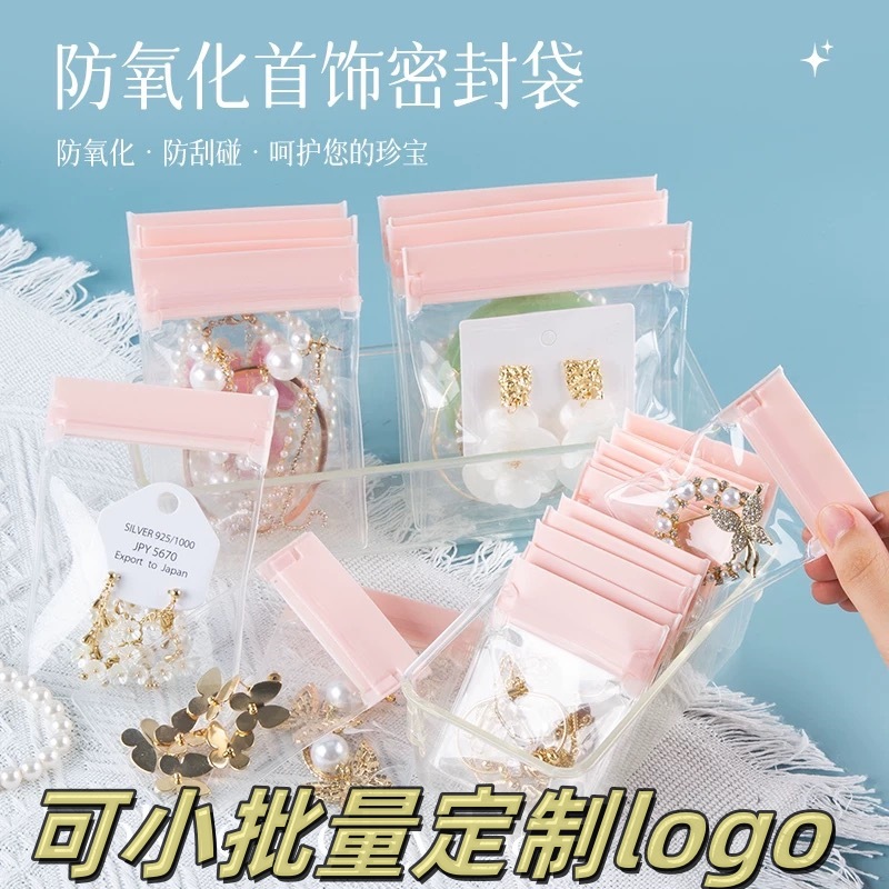 首饰收纳袋EVA自封袋加厚粉色防氧化饰品耳钉手镯饰品密封袋