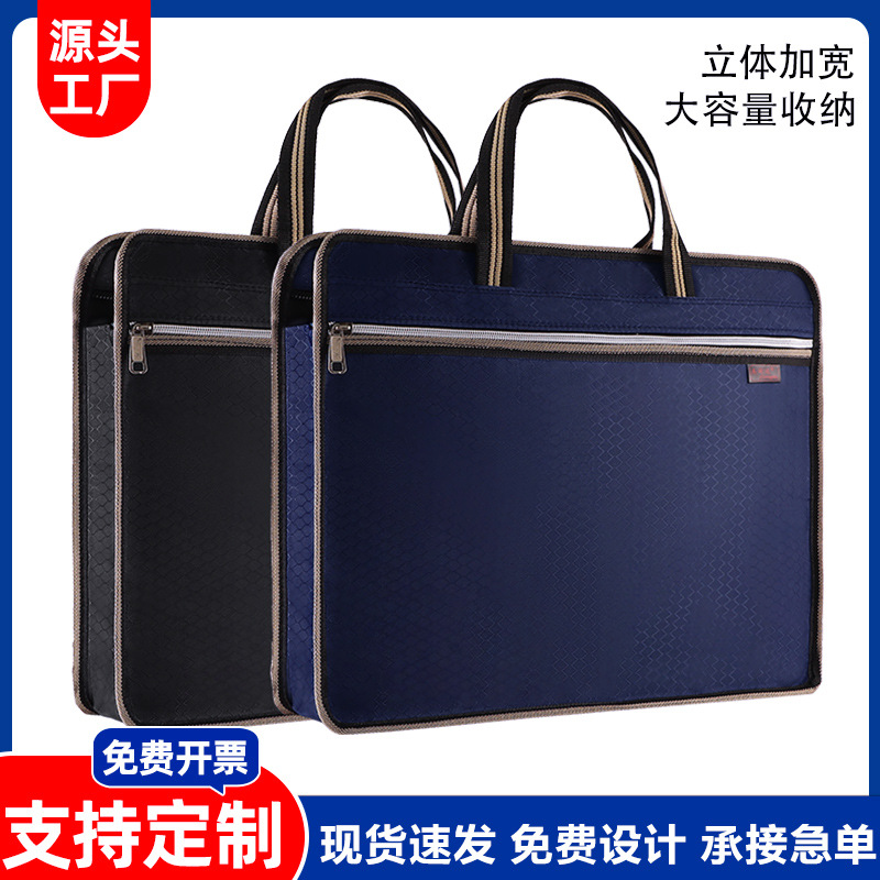 手提袋文件帆布袋双层大容量会议包资料袋公文包防水牛津布袋B4袋