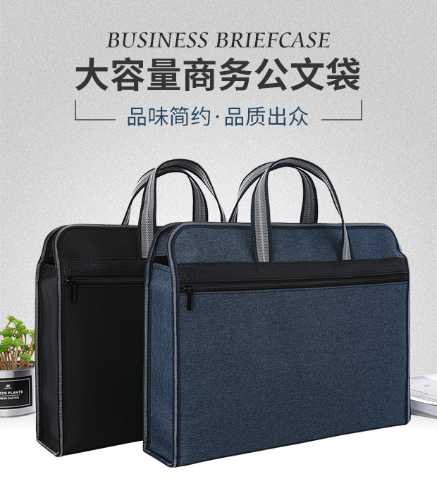 晨利興ビジネス公文書ハンドバッグ二重厚大容量防水コンピュータオフィス学習資料ファイルバッグ