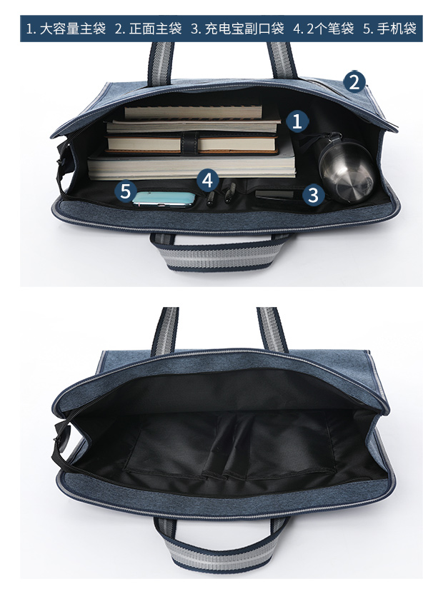 高級キャンバストートブリーフケース、二層ジッパーファイルバッグ、情報ファイルバッグ、オフィス収納ブリーフケース