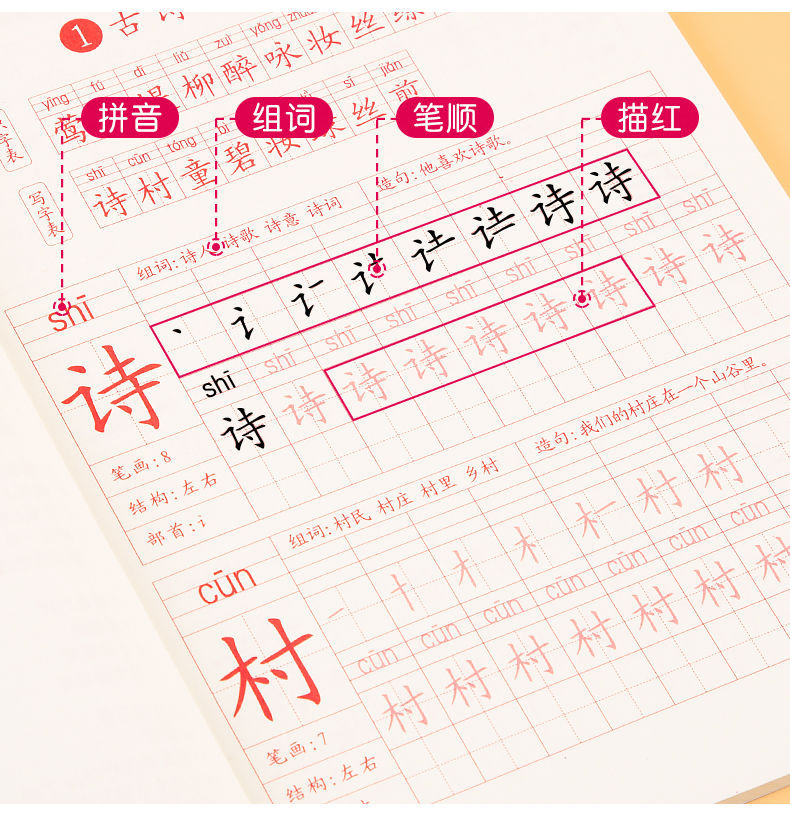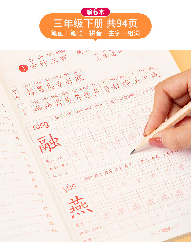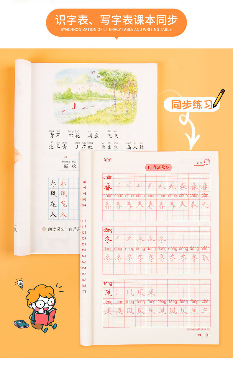 人教版同期一年生二三年級上下巻練習字帖練習字本初心者楷書小学校