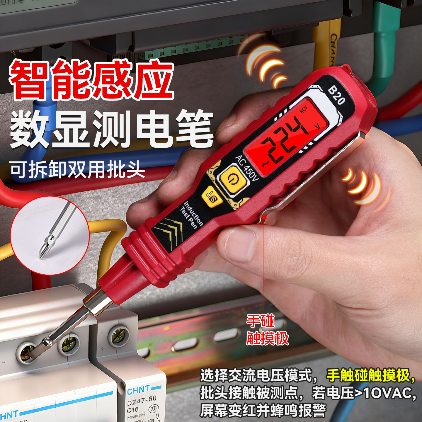 全自动款多功能智能测电笔 新款高扭力电工专用二合一数显测电笔