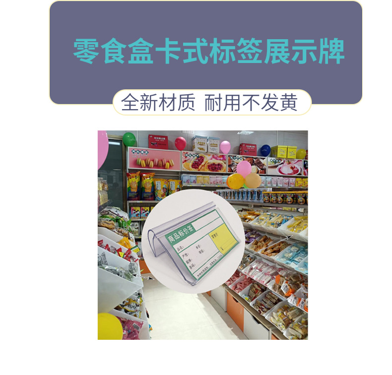 零食盒卡牌塑料透明标签纸价格牌超市标价挂牌面包盒吊牌货架展牌