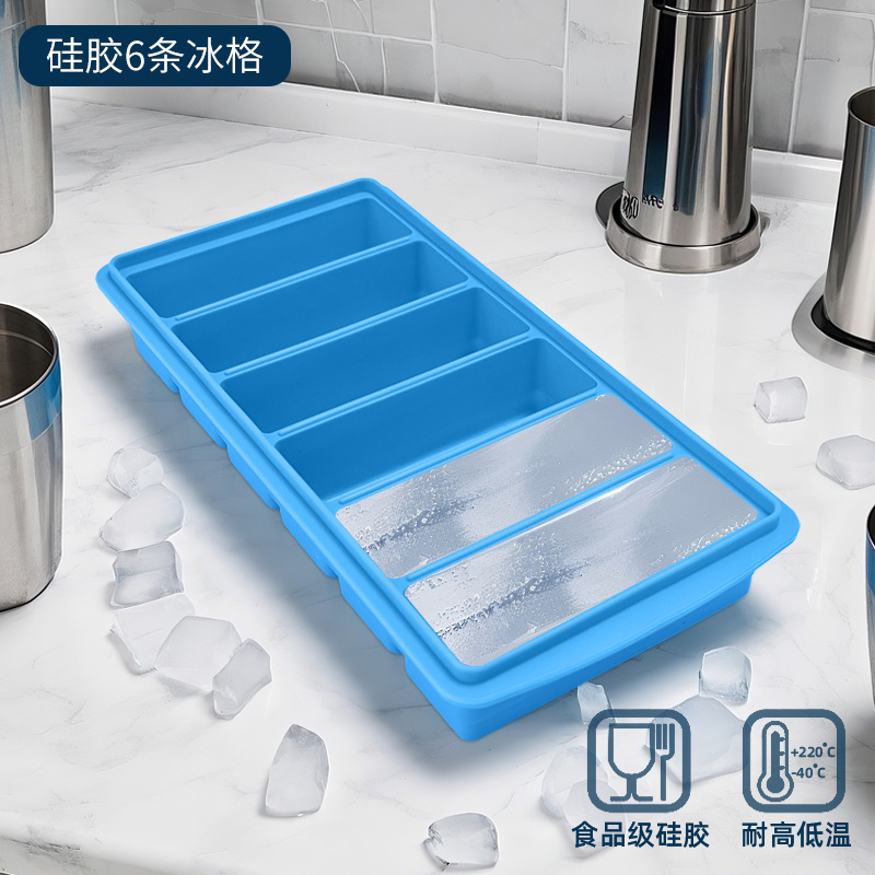 跨境长方形六条硅胶冰格大号冰块模具制冰机盒商用家用食品级批发