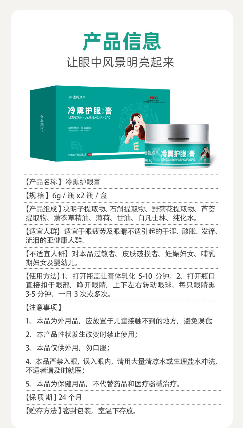 冷熏护眼膏含眼镜 学生眼部套盒熏蒸疲劳舒缓冰凉干涩视力护眼膏