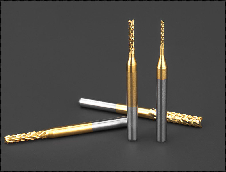 上海豪3.175トウモロコシフライス金色コーティングpcb板どら刀木工nc工具彫刻機タングステン鋼フライス