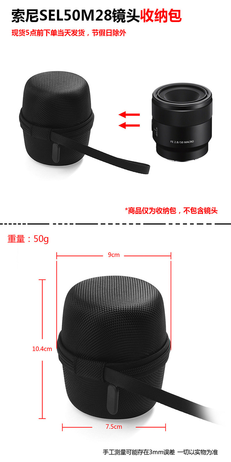 适用于索尼(SONY)FE 50mm F2.8 全画幅微单相机微距镜头保护包,耐磨耐脏,防震抗摔。