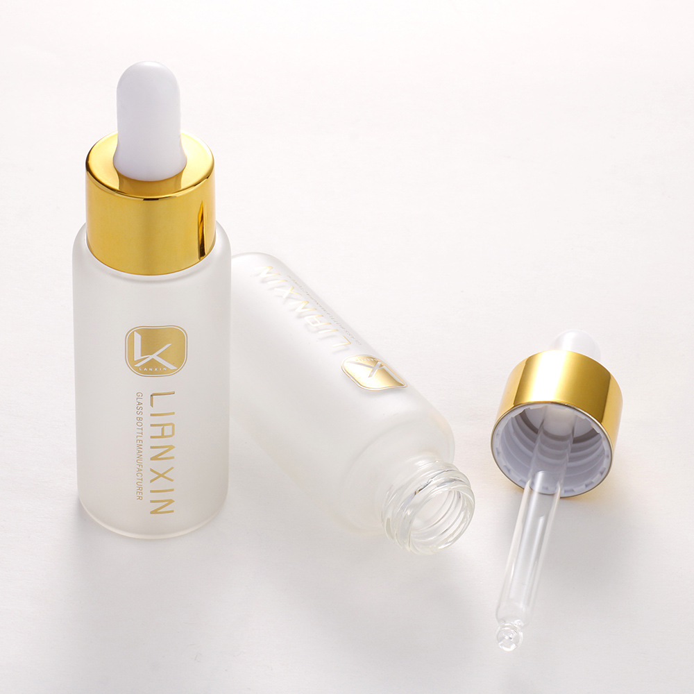 中国卸売スキンケア化粧品スポイトガラスボトル 30 ミリリットルシルクスクリーンつや消し空のガラスボトル
