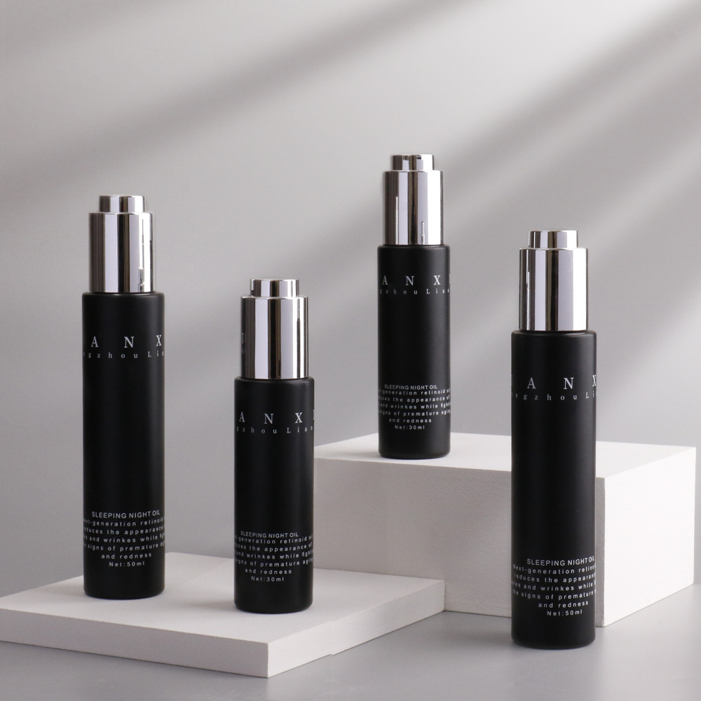 中国製黒色スキンケアボトル 30ml 50ml 100ml 120ml シルバーキャップ化粧品ガラス乳首ボトル