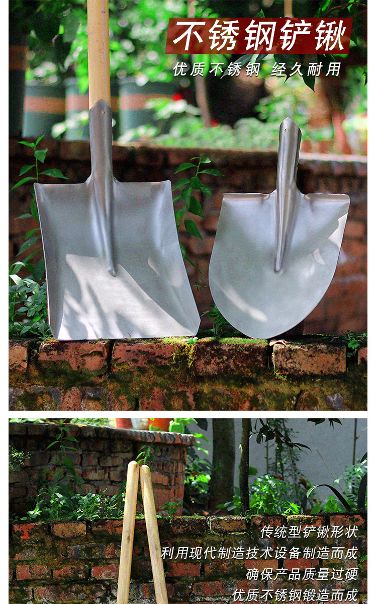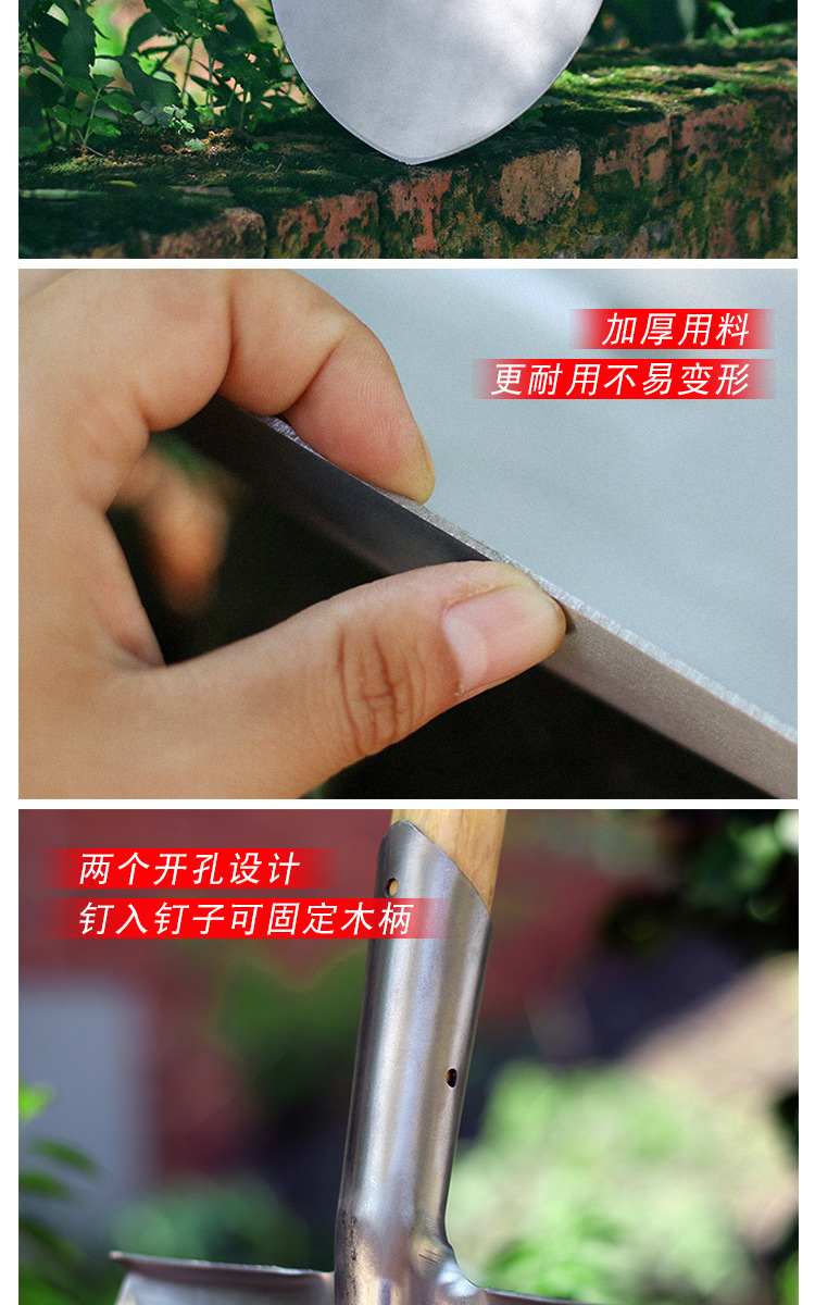 大シャベルマンガン鋼鉄シャベル屋外掘削土松土神器園林園芸工具野菜農業用木柄鉄シャベル