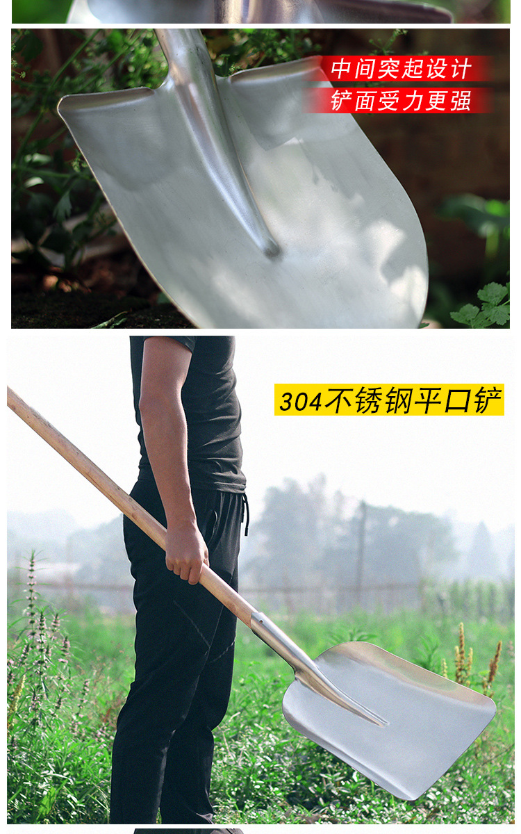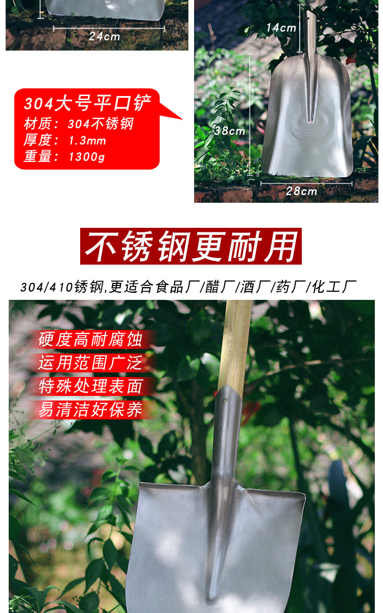 304 ステンレス鋼シャベル、厚みのあるシャベル、角型シャベル、平頭シャベル、ワイン粕シャベル、食品農業シャベルメーカー