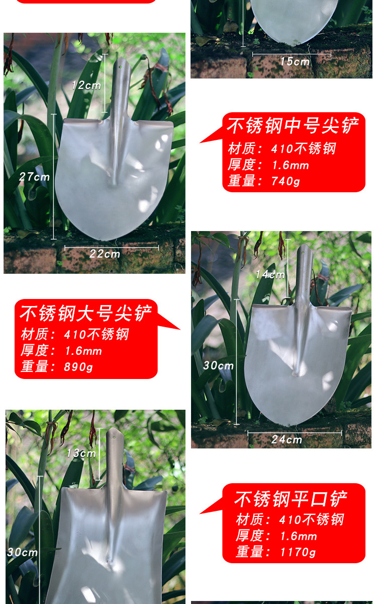 仕様 401ステンレスの平口シャベル,401ステンレス大型のブレード,401ステンレスの小さいサイズのシャベル,1.2メートルの木の柄,75cmt型ハンドル,トランペットのブレード,大型ブレード,マンガン鋼の木のシャベル,泥シャベル,赤い角シャベル1号,赤い角シャベル2号,赤い角シャベル3号,赤いブレード1号,赤い石炭シャベル2号,赤い石炭シャベル3号,原色角シャベル (1番),原色角シャベル (2番),原色角シャベル (3番),130cm長さ多機能角型シャベル (非磁性ステンレス),130cm長多機能アークブレード (非磁性ステンレス),ステンレス角シャベル (ハンドルなし),ステンレスアーチ形シャベル (ハンドルなし),木の柄の大きいサイズのマンガン鋼の先のシャベル,木の柄の大きいサイズのマンガン鋼の角のシャベル,全ステンレス大型シャベル,全ステンレス小型スコップ