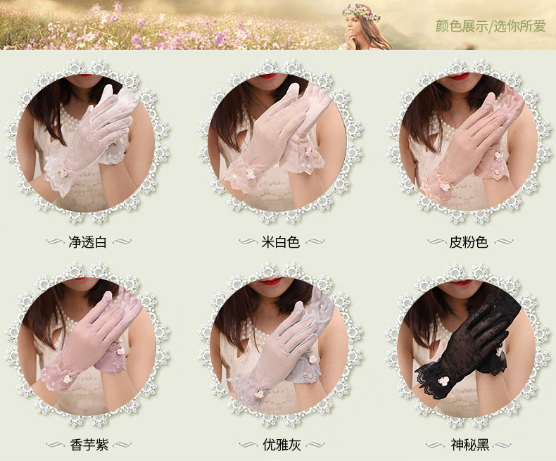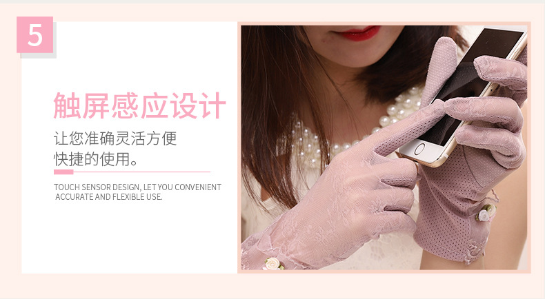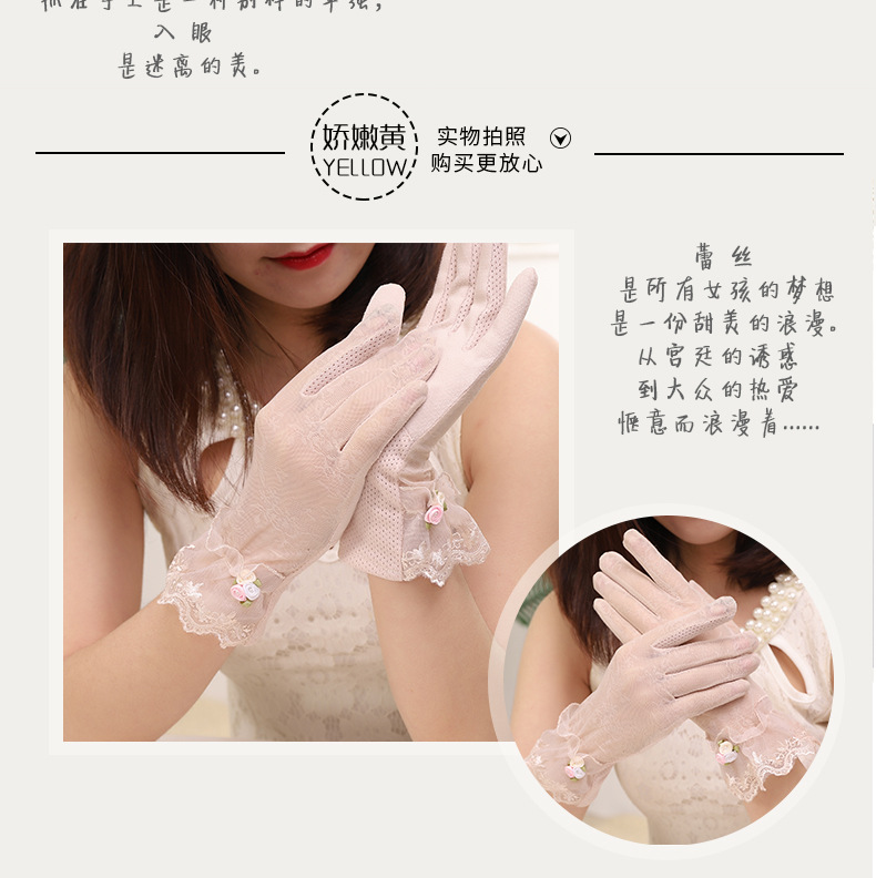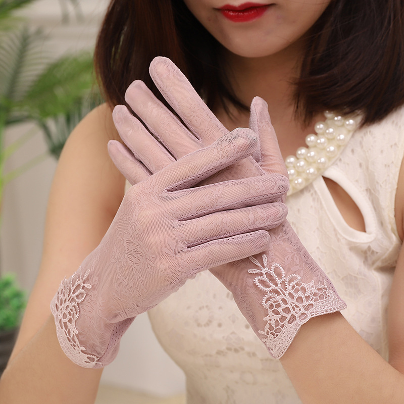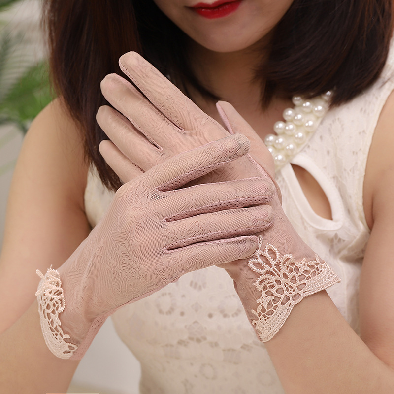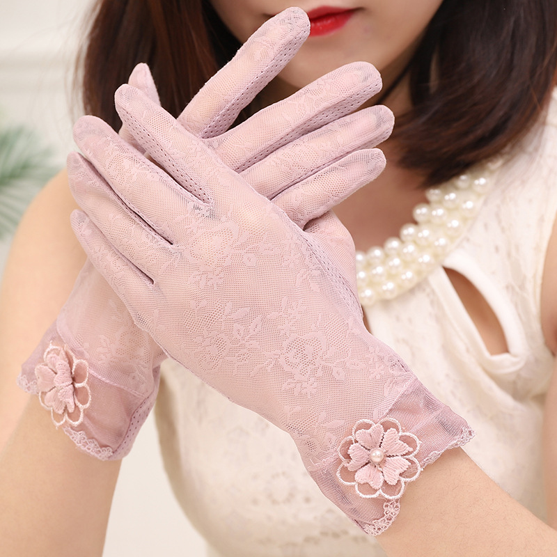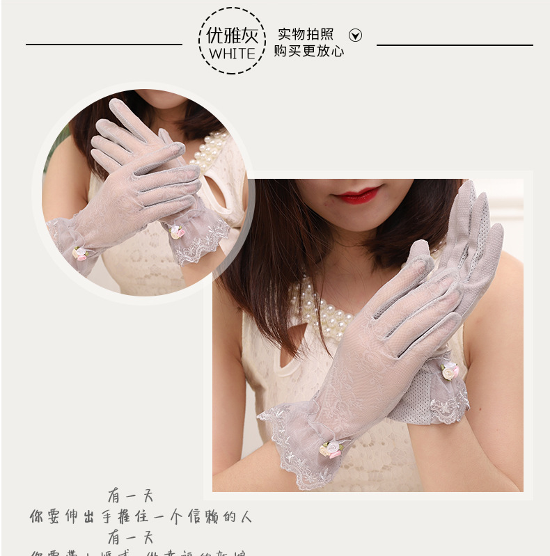 日焼け止め手袋の女性の短い夏の薄いタイプの屋外で自転車に乗ってレースの長いタイプの滑り止めのタッチパネルの氷の手袋の卸売りを運転します。