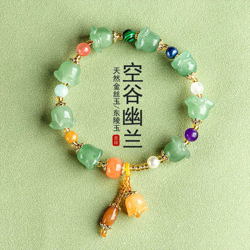 天然新疆金糸玉東陵玉蘭手串ブレスレットゴビ玉黄玉オリジナル古風女性玉