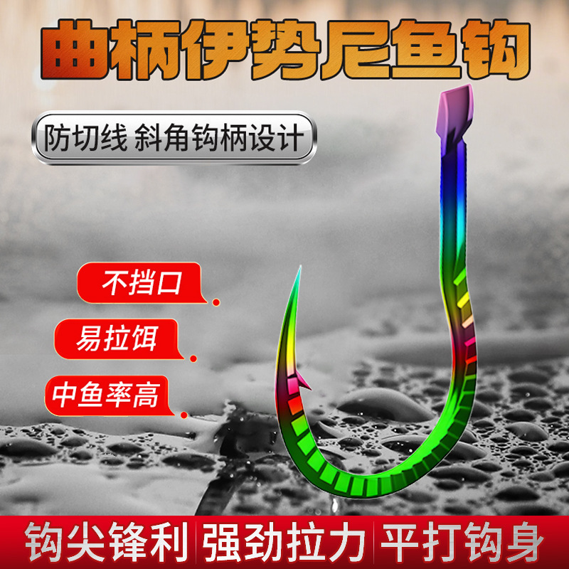 袖:此钩型无倒刺。钩尖锋利,钩柄长,钩条细钩身轻,适用于吸入取食的小型鱼种,快钓快取,多用于钓白鲫、小白条等。