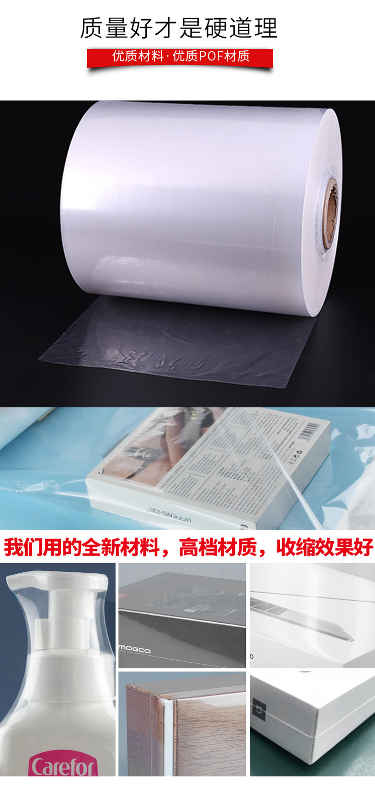 pof热缩膜 透明强韧收缩膜 全自动包装机对折膜 化妆品盒子封装膜