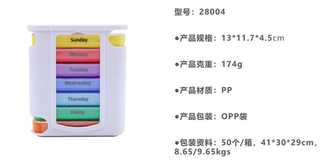 メーカー直販引き出し薬箱、28格プラスチック薬箱、7x4薬箱、縦型28格薬箱
