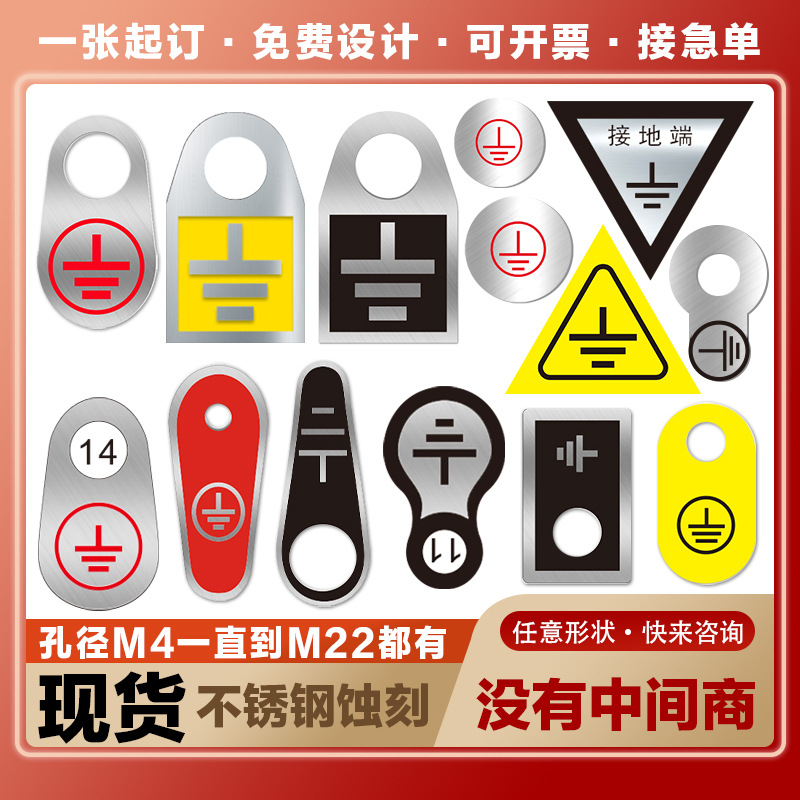 ステンレス鋼接地マーク、シルクスクリーン印刷、腐食性アルミニウム金属銘板、在庫あり、穴径M4568、接地マーク、電気製品