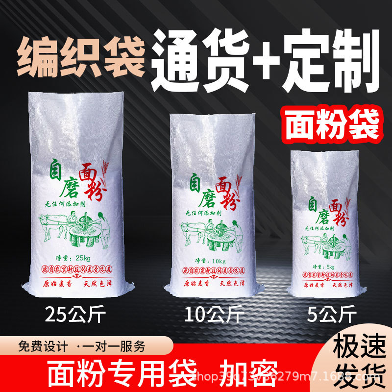 面粉袋子编织袋5 10 25公斤装50斤加密白色自磨面粉包装袋彩袋