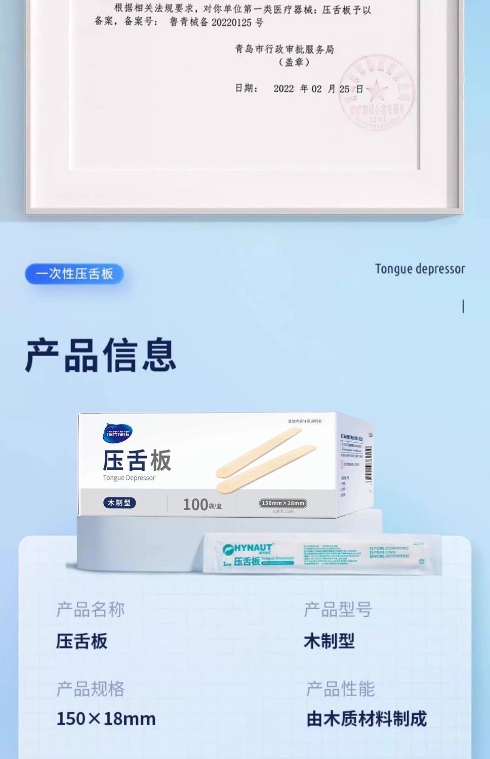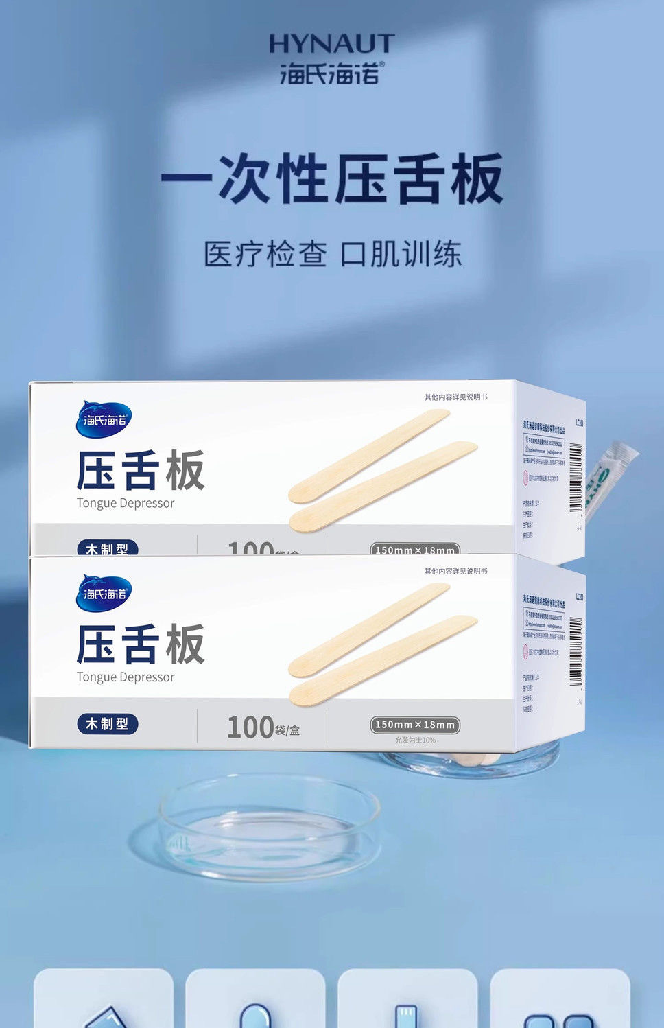 海氏海諾医療用使い捨て舌板口腔検査口筋トレーニング舌棒木製タブレット卸売り
