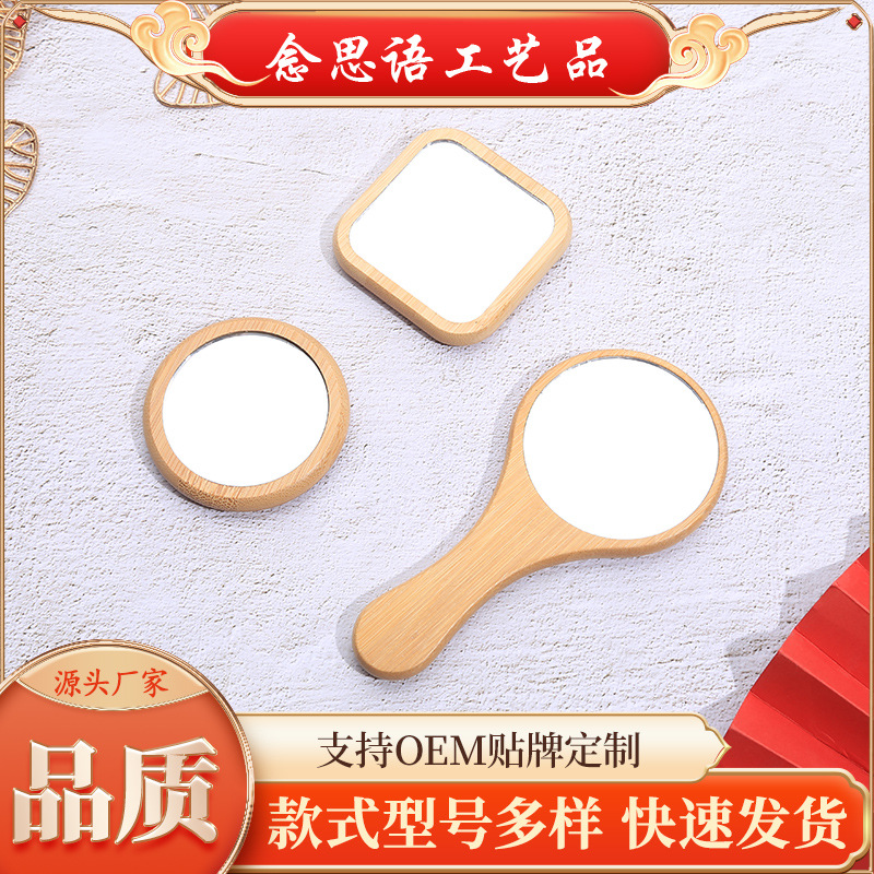 楠竹の木の携帯の小さい円の方の鏡のメーカーの直接販売の携帯の手土産の取っ手は鏡を持って国境を越えて対外貿易を注文します。