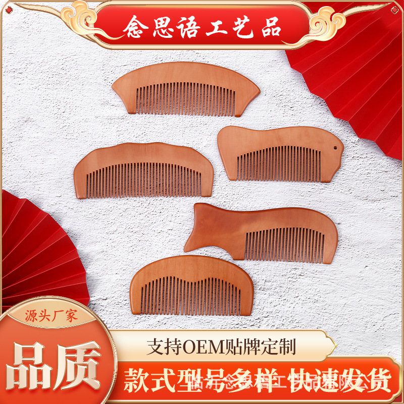実木質桃木櫛旅行家庭用携帯小月櫛クロスボーダー対外貿易レーザー彫刻ロゴ美順髪櫛