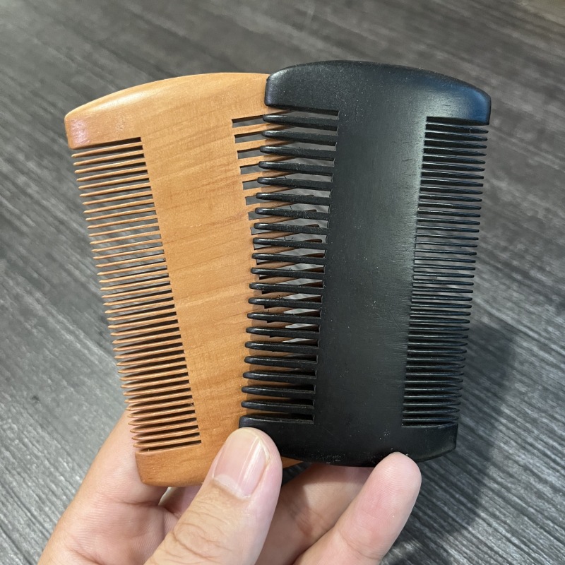 両面の歯の櫛の黒い漆の色のひげの形の髪の櫛の桃のケヤキの木の質の越境する対外貿易の彫刻のロゴ