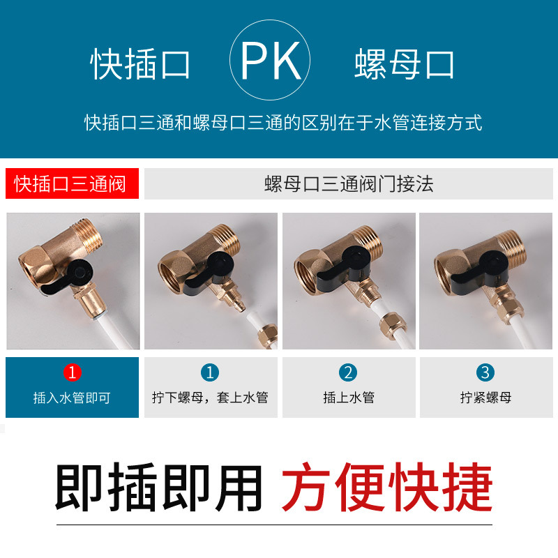浄水器クイックジョイント2分4分変換純水機水道部品卸売りねじクイックジョイント三方ボールバルブ