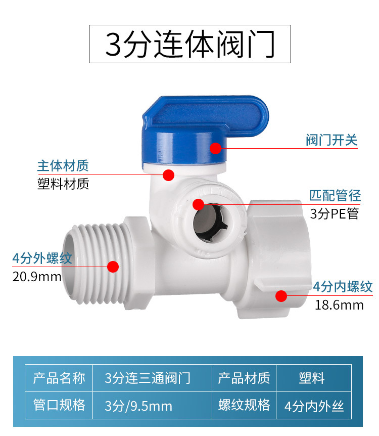 浄水器部品一体入水三方2分3分純水機ボールバルブ浄水器バルブスイッチ共通部品