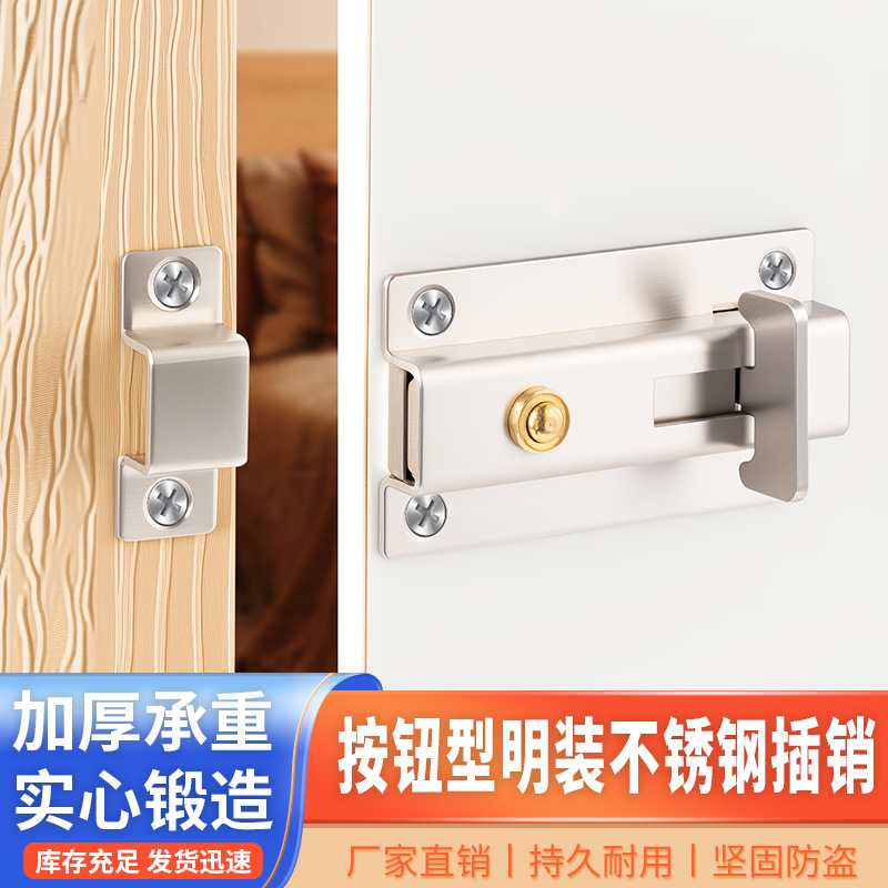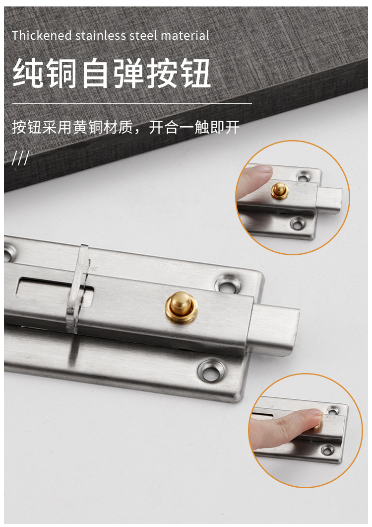 ステンレススプリングラッチドアダブルヘッド手動盗難防止ドア栓トイレドア窓自弾ボタンドアラッチ