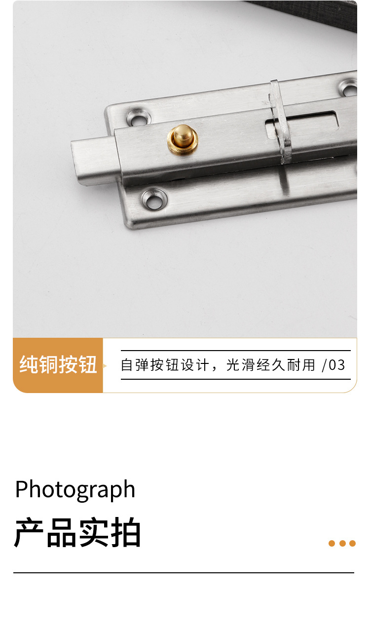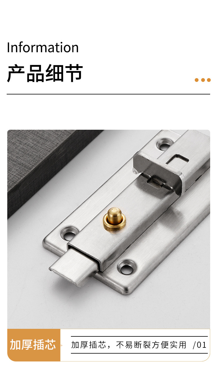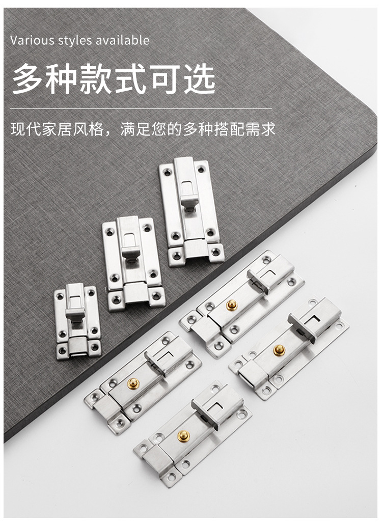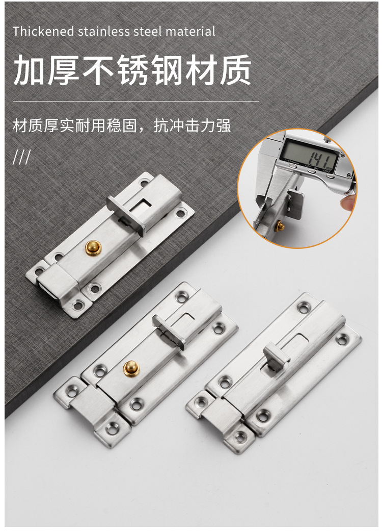 304 ステンレス鋼のラッチドアボルト、ドアバックル、ドアスクラッチロック、昔ながらの木製ドア、浴室のドアと窓、盗難防止の厚みのある明るいラッチ