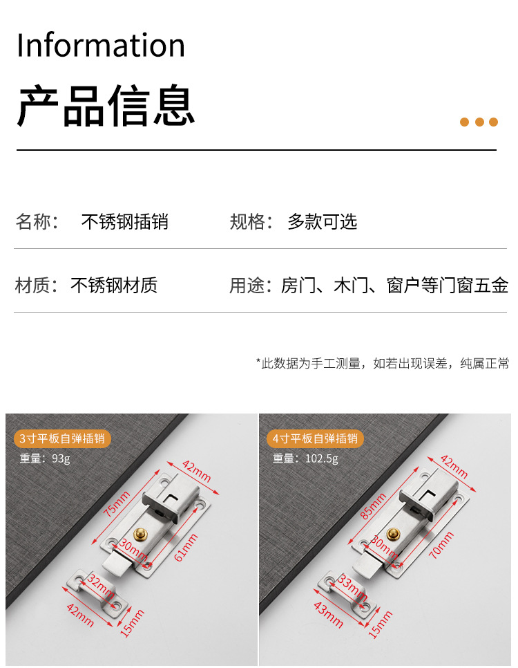 ステンレス自動スプリングラッチを厚くして、ドアロックを掛けます。