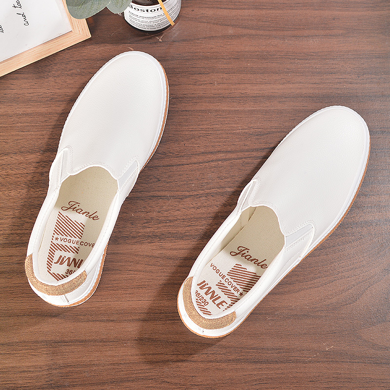 女性用スリッポンホワイトシューズ夏薄型2024新作高さ増加ナースシューズ怠惰な靴革カバーカジュアルシューズ