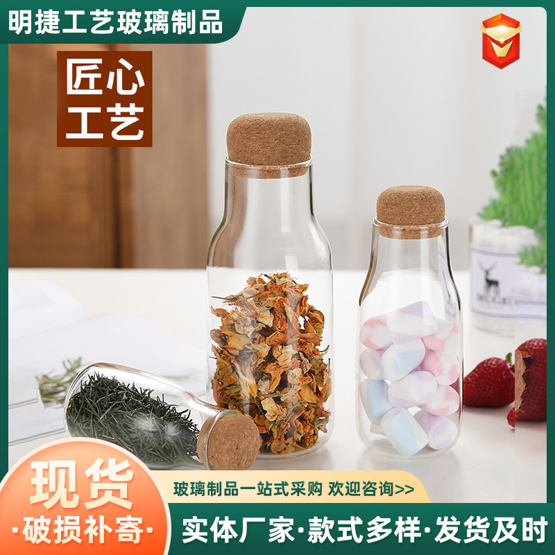 高ホウ素シリコンガラス密封缶コルク栓収納缶五穀雑穀収納缶創意透明ガラス茶葉缶