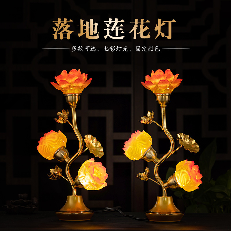 瑠璃供仏灯仏前供灯led七色蓮花灯仏陀供灯家庭用電気仏台長灯置物