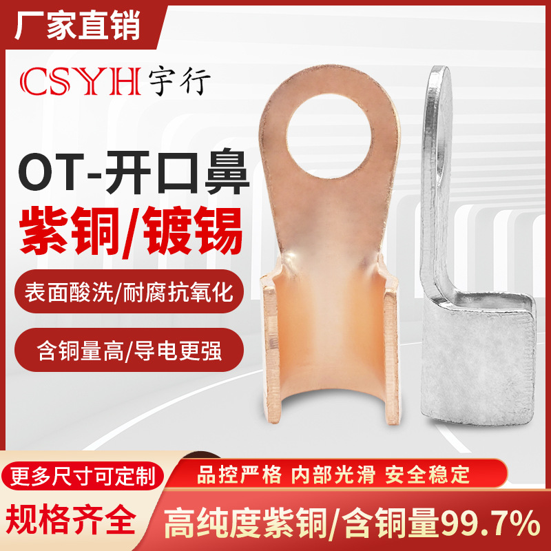 OT開口鼻紫銅端子60a電瓶線ケーブル銅線耳継手国標a級厚肉錫メッキ