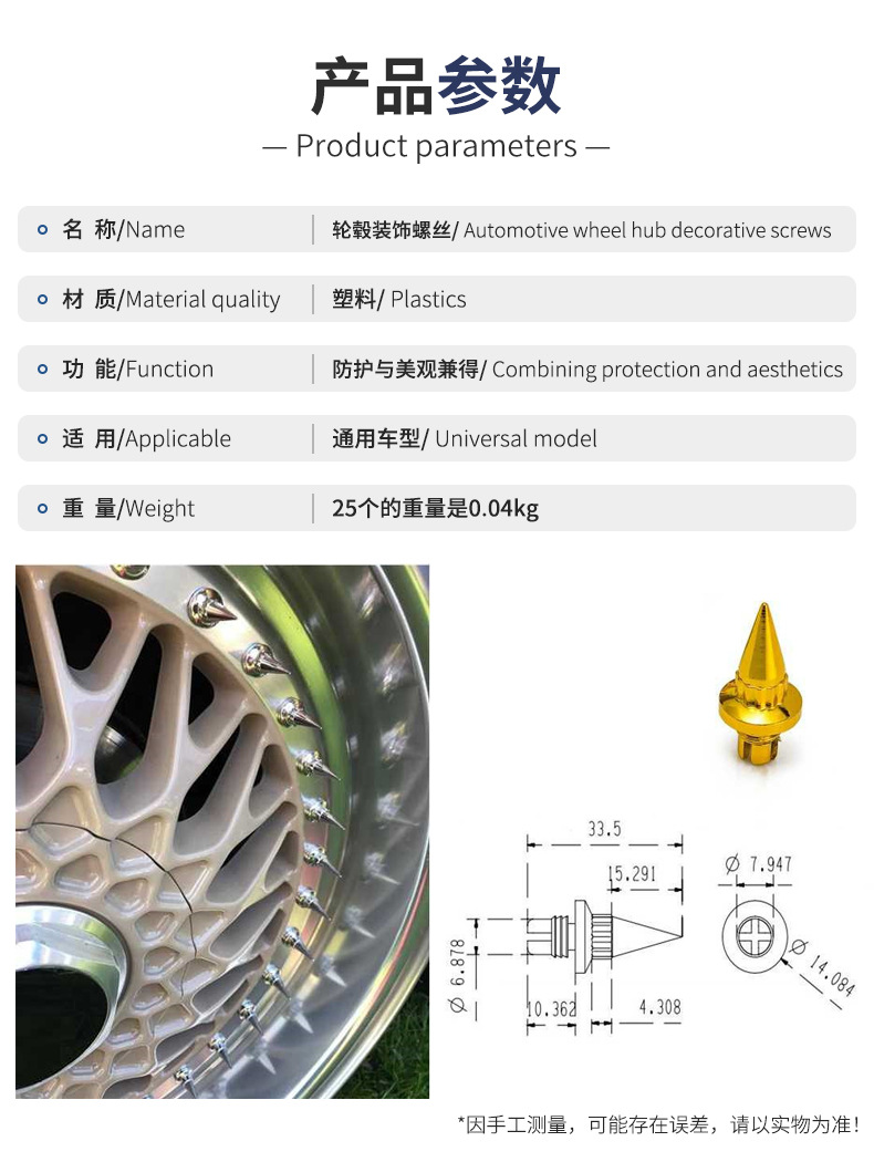 产品名称:汽车轮胎轮毂装饰尖头螺丝