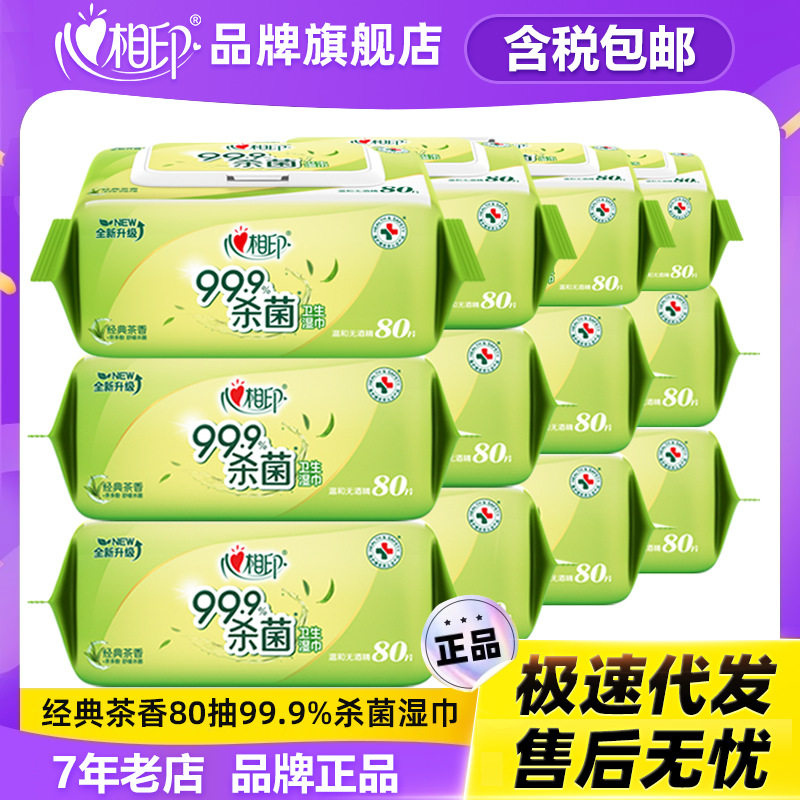 心相印清新茶香杀菌湿巾80抽带盖抽取温和无酒精湿纸巾包邮含税