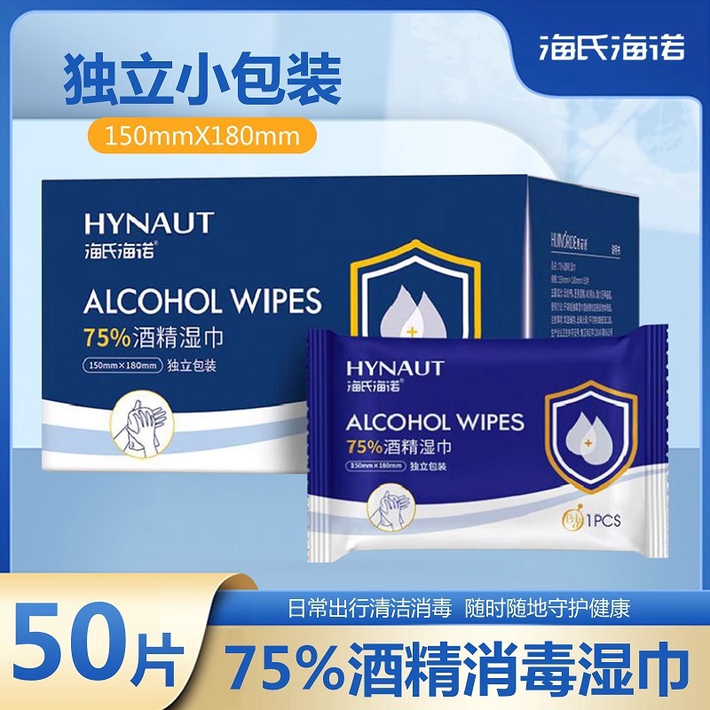 海氏海諾恵諾徳50枚独立包装75% 度アルコール消毒ウェットティッシュ小学生携帯殺菌
