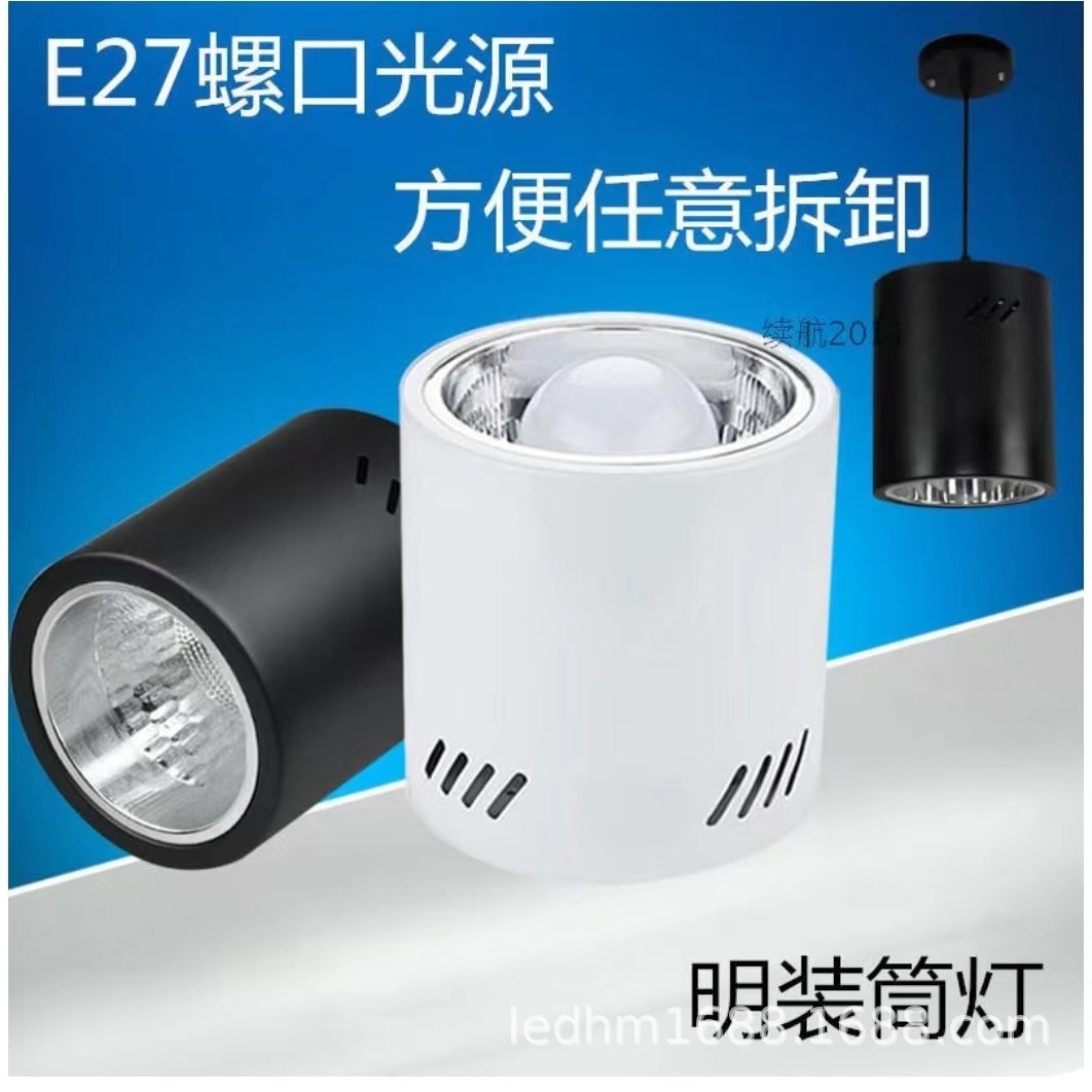 明装筒灯吸頂筒灯は穴を開けない伝統的なE27灯頭吊り線吊り棒明装白黒天井灯工場