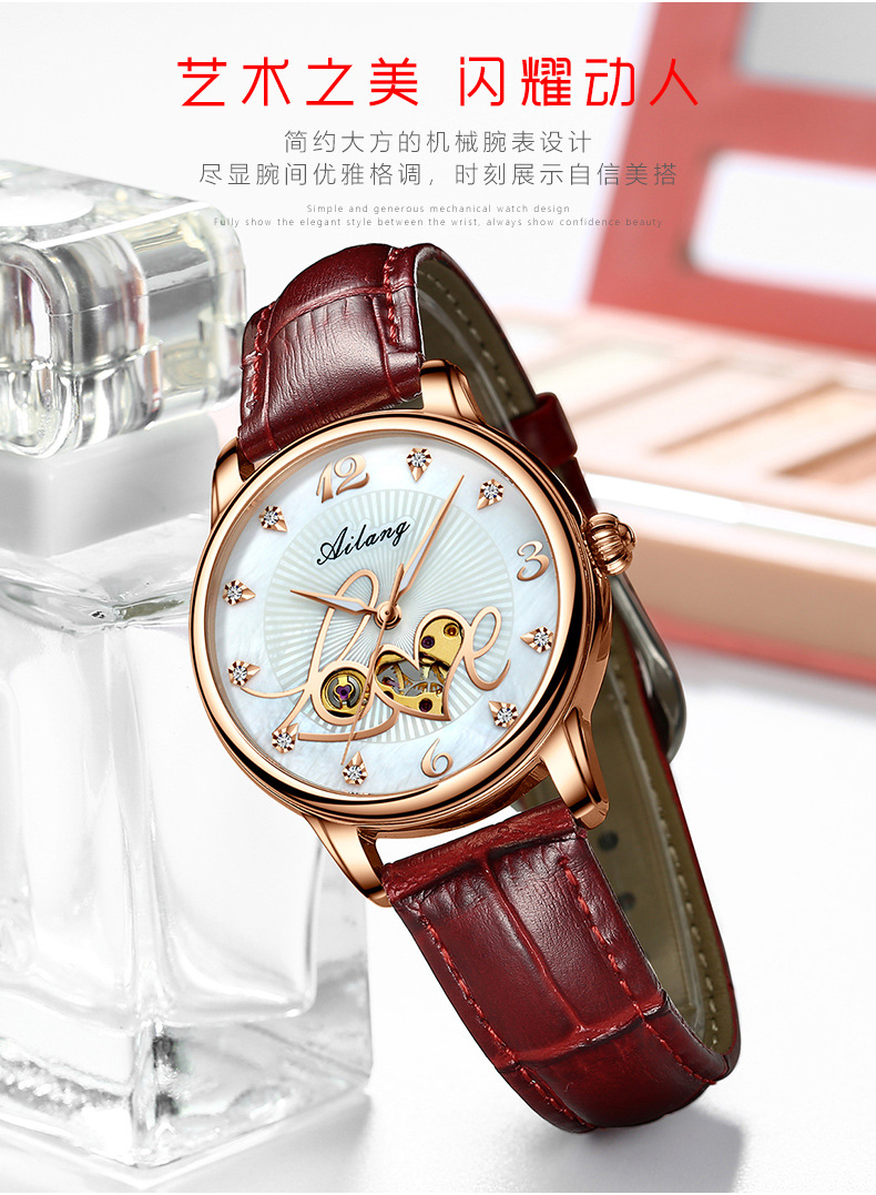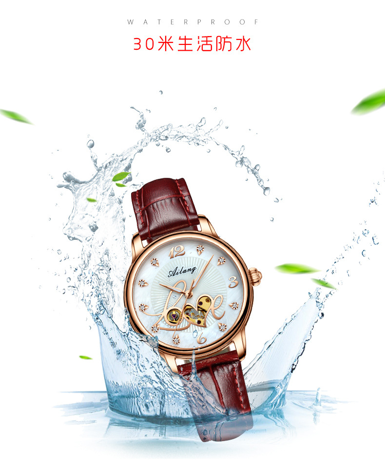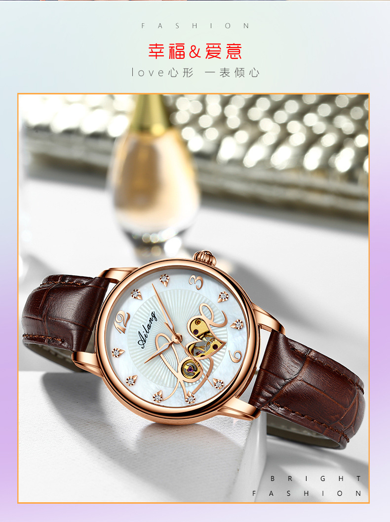 艾浪2020新型正ブランド腕時計女性全自動機械腕時計女性時計ファッションファッションベルト防水