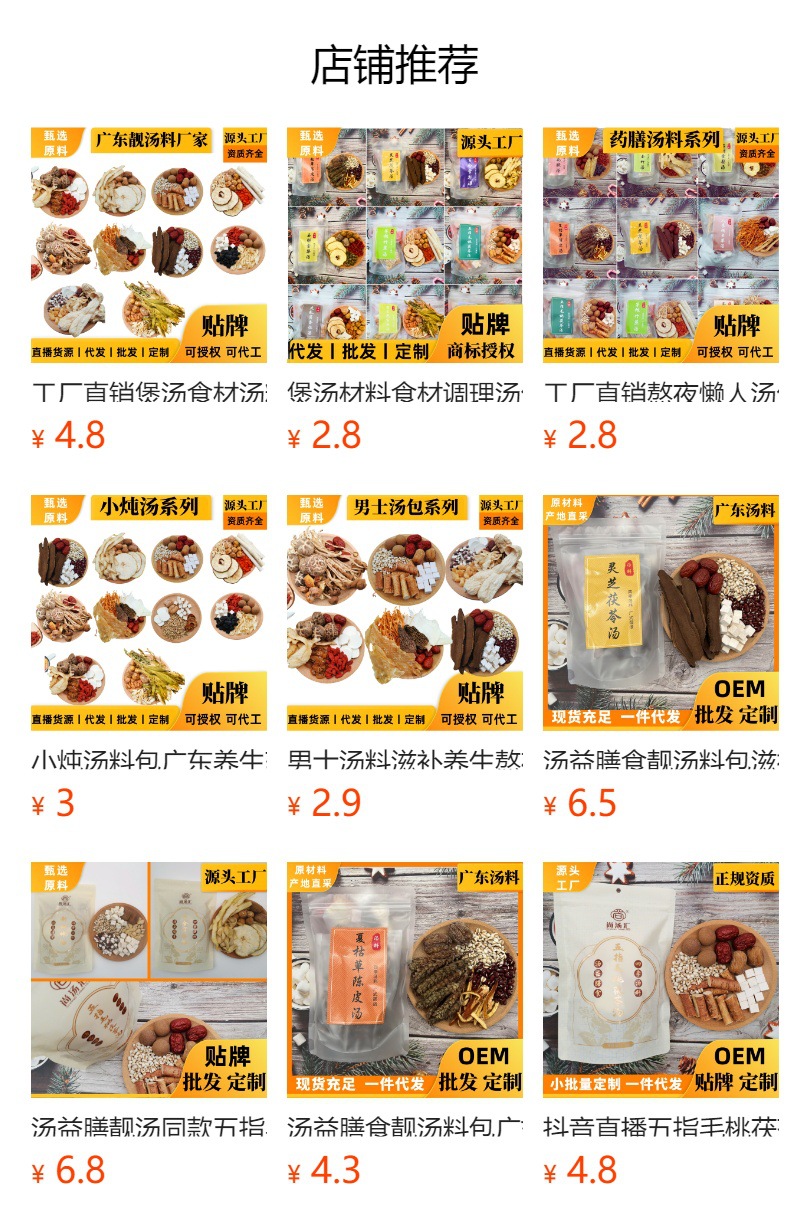 小炖湯料パック 広東風スープ 子供の成長促進食材 薬膳菌類スープ 健康四神湯パック 卸売・配送