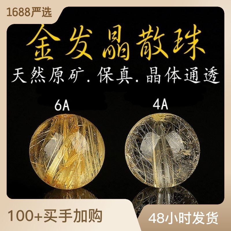 原鉱金発晶散珠チタン晶円珠散珠diyアクセサリーと仏珠108個アクセサリー