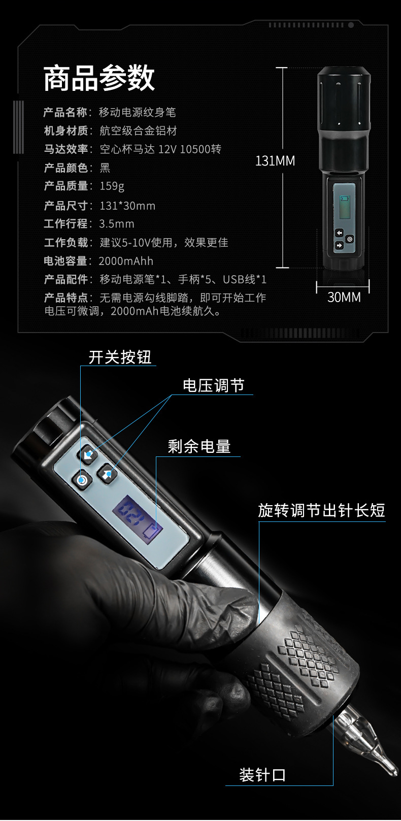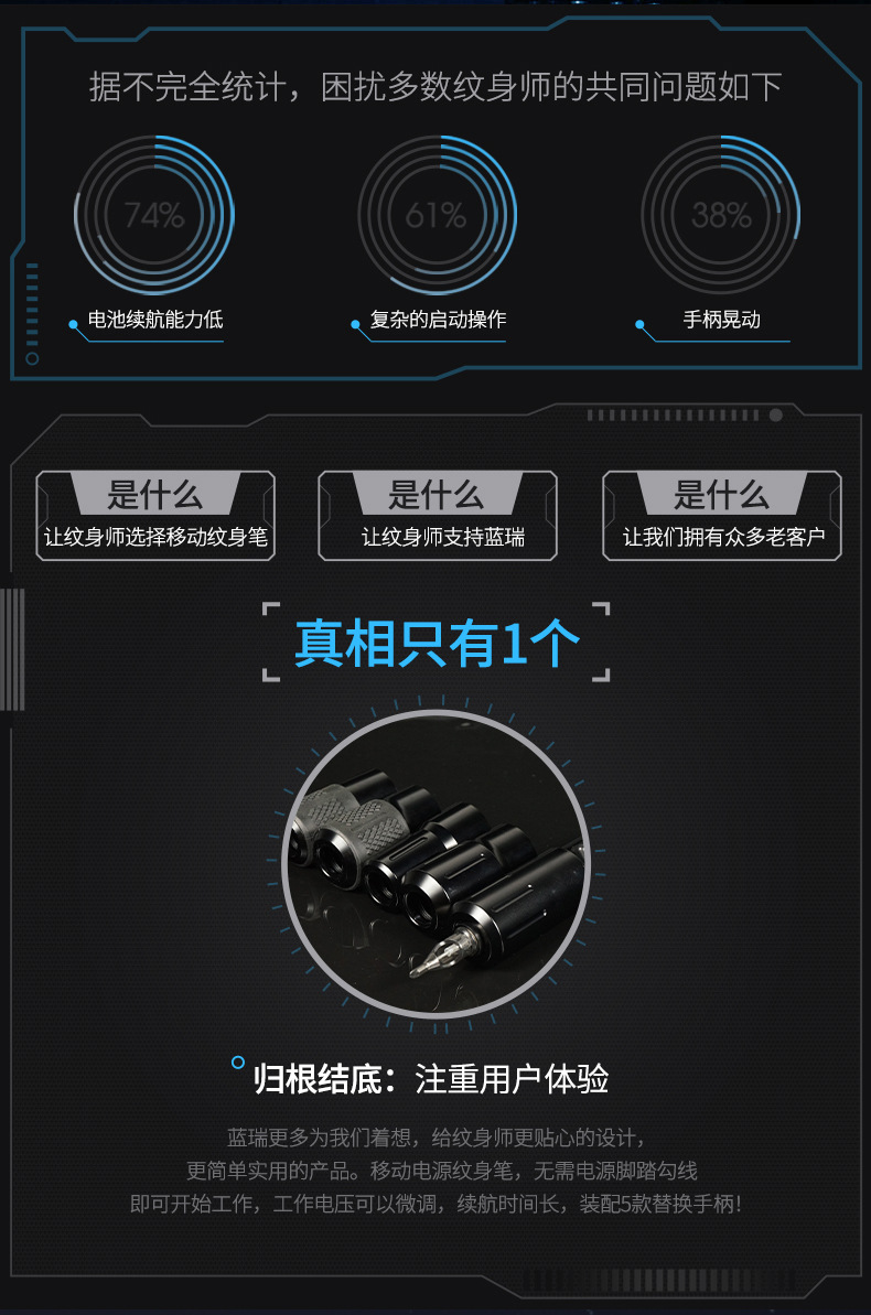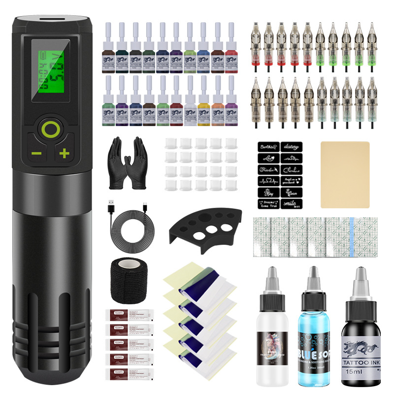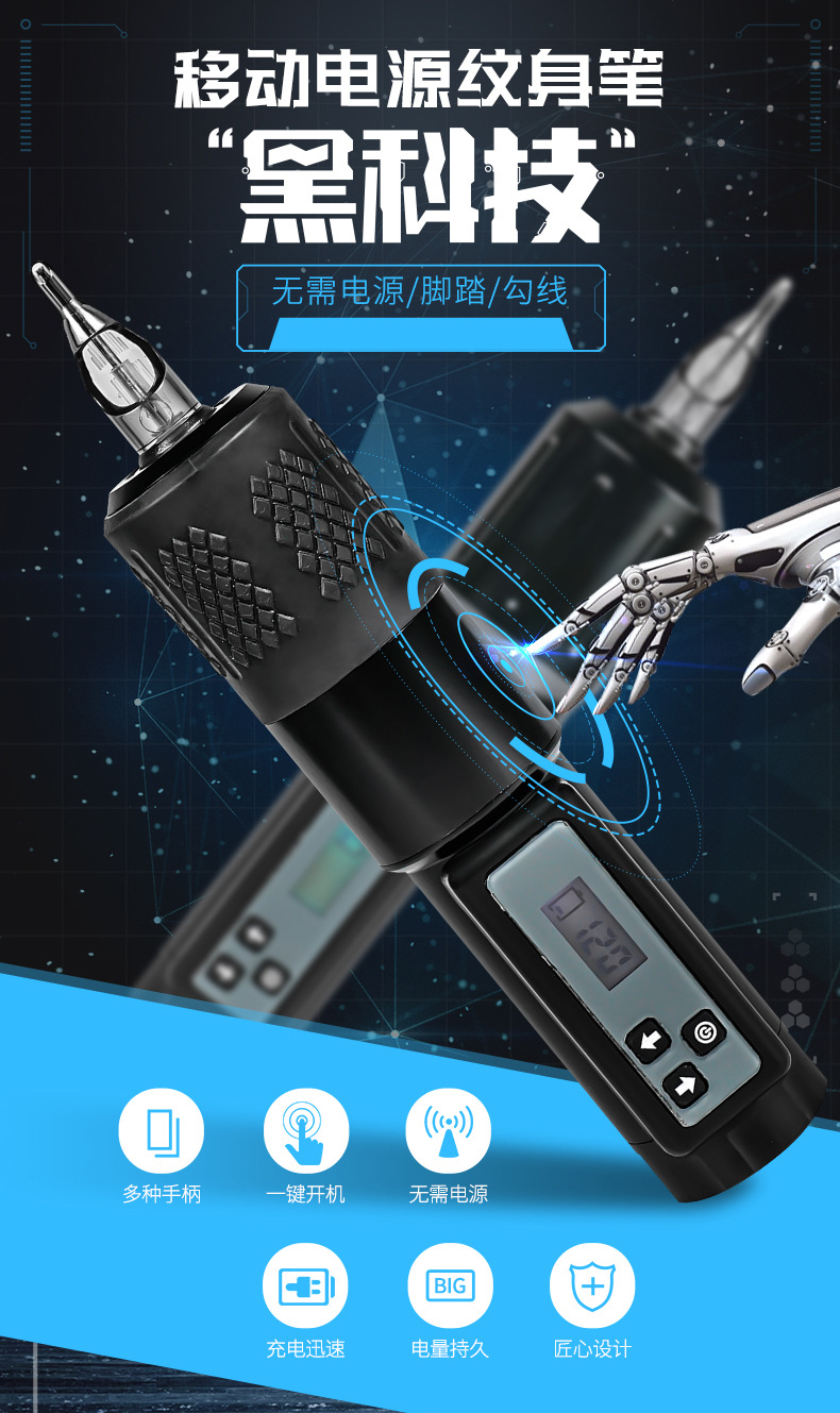 蓝瑞纹身笔纹绣纹身马达机点刺纹身双模式充电笔纹身器材跨境批发